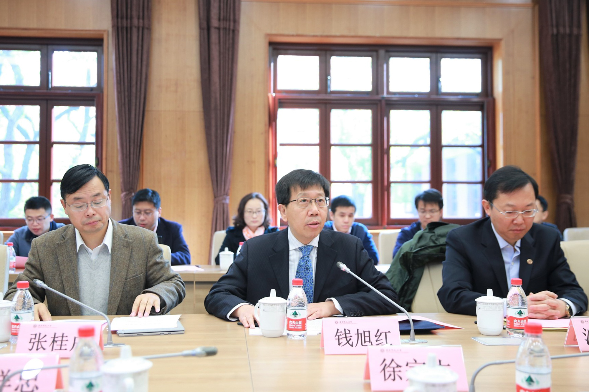 钱旭红在致辞中对所有参与重点实验室建设的与会专家表示感谢。随后他介绍了学校的基本情况,并指出成立统计与数据科学前沿理论及应用教育部重点实验室,不仅是学校学科发展的新挑战和新机遇,也是学校服务国家教育和上海经济社会发展,精准对接国家战略和参与构筑人类命运共同体的重要举措。他表示学校将扎根中国大地建设世界一流大学,通过实施“教育+”“生态+”“健康+”“智能+”“国际+”五大行动计划,打造华东师大的幸福之花,学校也将从机制体制、经费配套、人才引进等多方面对实验室进行支持,全力以赴将实验室打造成为具有国际影响力的统计学和数据科学研究高地、高层次人才培养基地和国内外高层次学术交流平台,并为建设国家重点实验室打下坚实基础。
