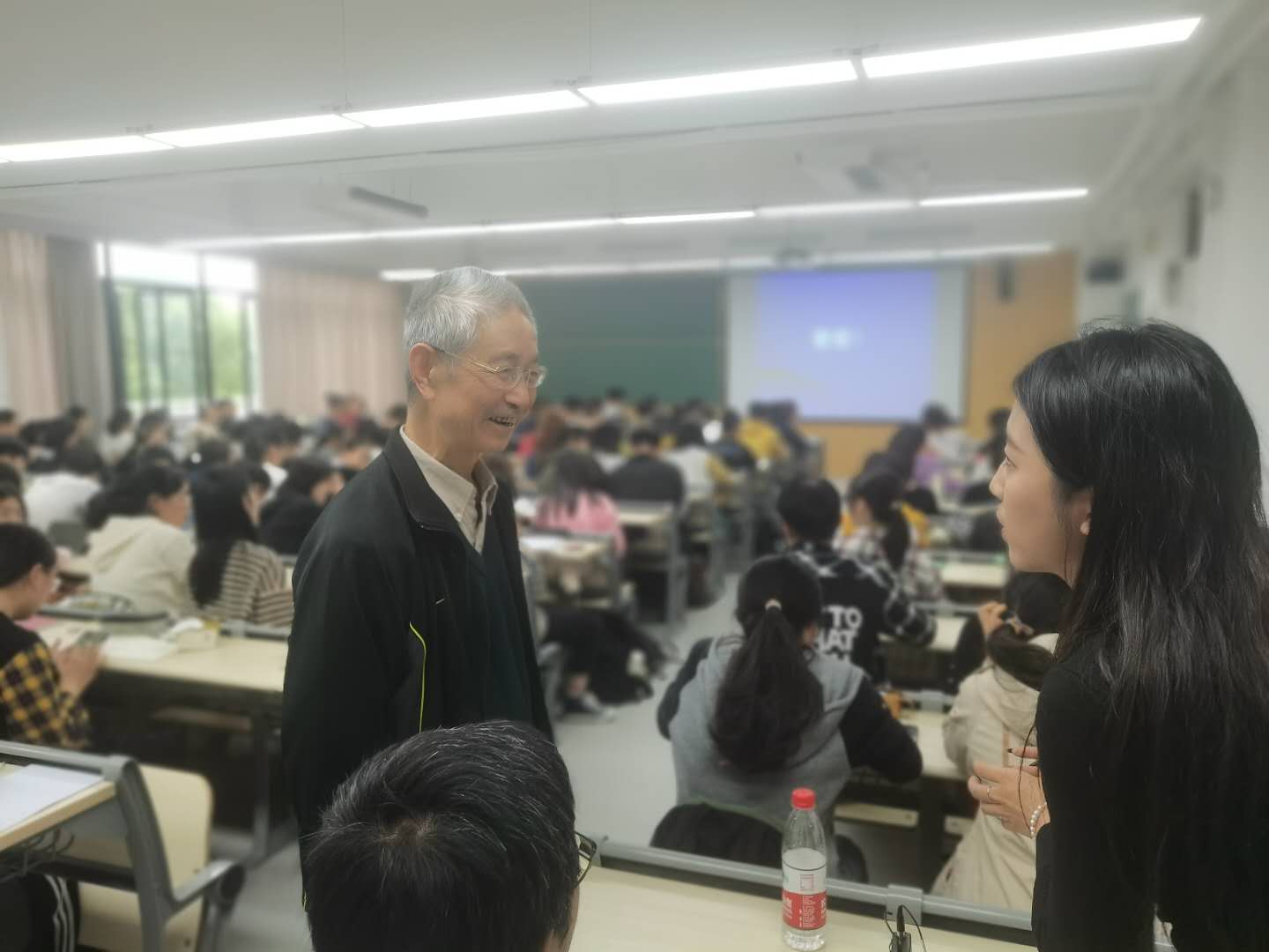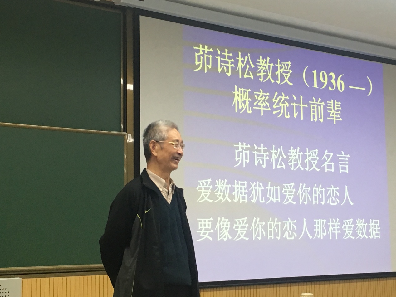 王静龙教授以生动诙谐的语言从数理统计的历史发展引入,从日常生活中的统计介绍,深入浅出地阐述统计学在现实生活各个维度的具体应用。同学们听得兴味盎然,目不转睛。之后,王教授向同学们展示了格朗特的第一张生命表,开始对保险和风险管理的应用和具体表现的讲解,让同学们领略到了保险学的魅力。最后,王教授以一个传奇公司的起落故事为同学们讲解了金融工程学科的知识和应用。
