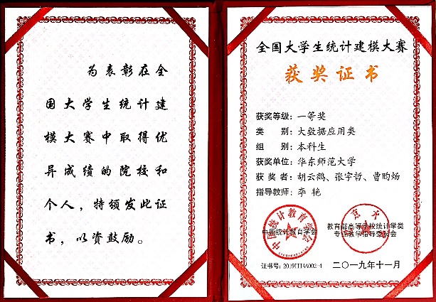 一等奖 | 基于融合树模型的幸福感分析 | 胡云鹤 张宇哲 曹昀炀 | 大数据应用类 | 李艳 |