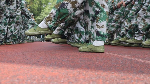 军训第一天,教官带领同学们学习基本队列动作,在一声声“立正、稍息、跨立”中感受令行禁止的纪律。