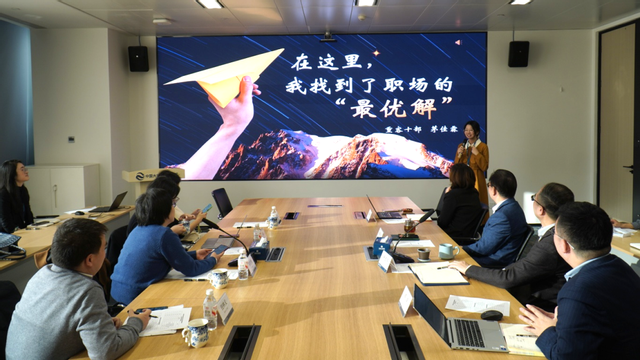 交流期间,永利集团2025届员工代表(在大地保险入职的员工)进行风采展示。员工结合理论学习与一线实践,分享了在岗位历练中的成长体会,感谢母校与单位的培养,并表达了对保险行业的坚定信念与责任担当,展现了华师大学子扎根行业、服务社会的精神风貌。