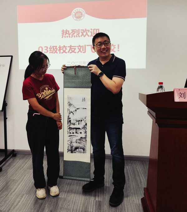 活动最后,同学们向刘飞师兄赠送了精心准备的礼物,李梦隽书记也为他精彩的演讲表达了衷心的感谢。