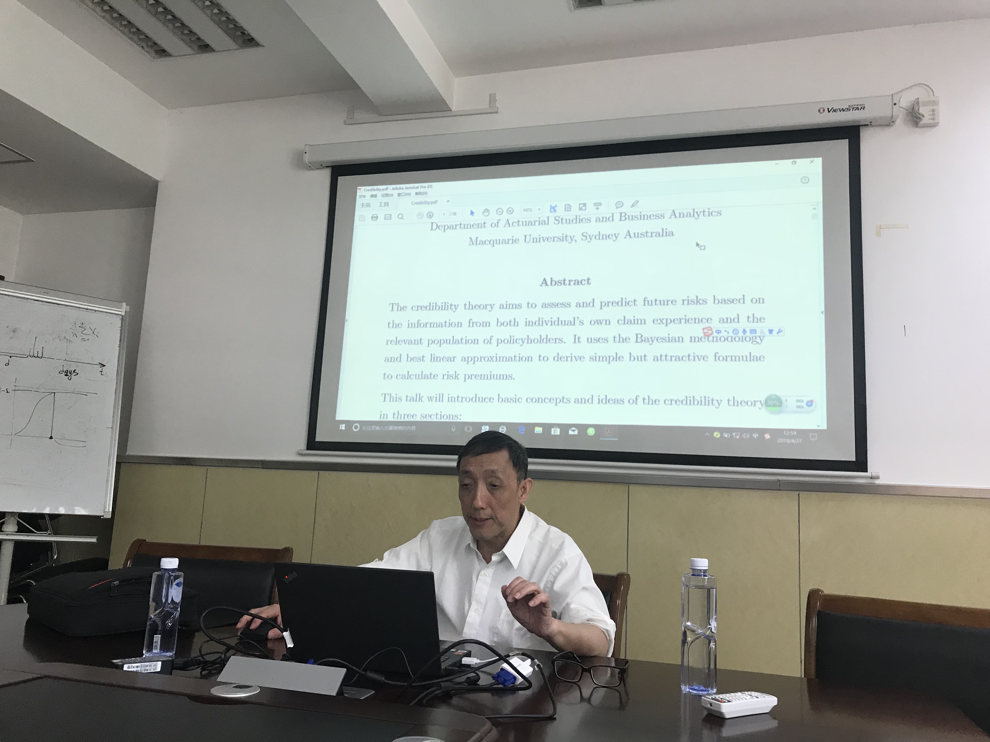 4月27日下午,悉尼麦格理大学的Xian Zhou教授应邀在闵行校区统计楼103会议室为3044永利集团的师生作学术报告,报告的题目是《Introduction to Credibility Theory》。