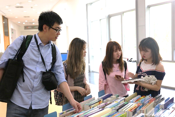 公司志愿者带领港中大统计系员工在闵行校区图书馆参观