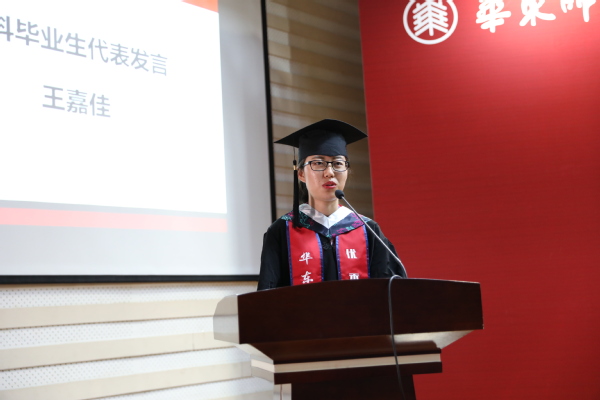 2014级统计系本科生王嘉佳作为本科毕业生代表发言。在她看来,在所有入学的金统同学里,都会有一个先验信息——金统出学霸,而在面对一系列的难题,日积月累的历练,各种竞争后,3044永利集团的员工的确足够优秀,脱颖而出。在这四年里,统计学发展的非常快,这是大数据时代带给所有统计人的机遇和挑战,但王嘉佳同学希望所有毕业生可以记住那句:Technologies come and technologies go, but insight is forever,勇往直前。最后,王嘉佳同学深感老师和同学是她在师大收获的最大的财富,并且对学院的各位老师的悉心指导、关心呵护表达了最真挚的感谢,对一路相伴的同窗挚友献上了最真诚的祝福。