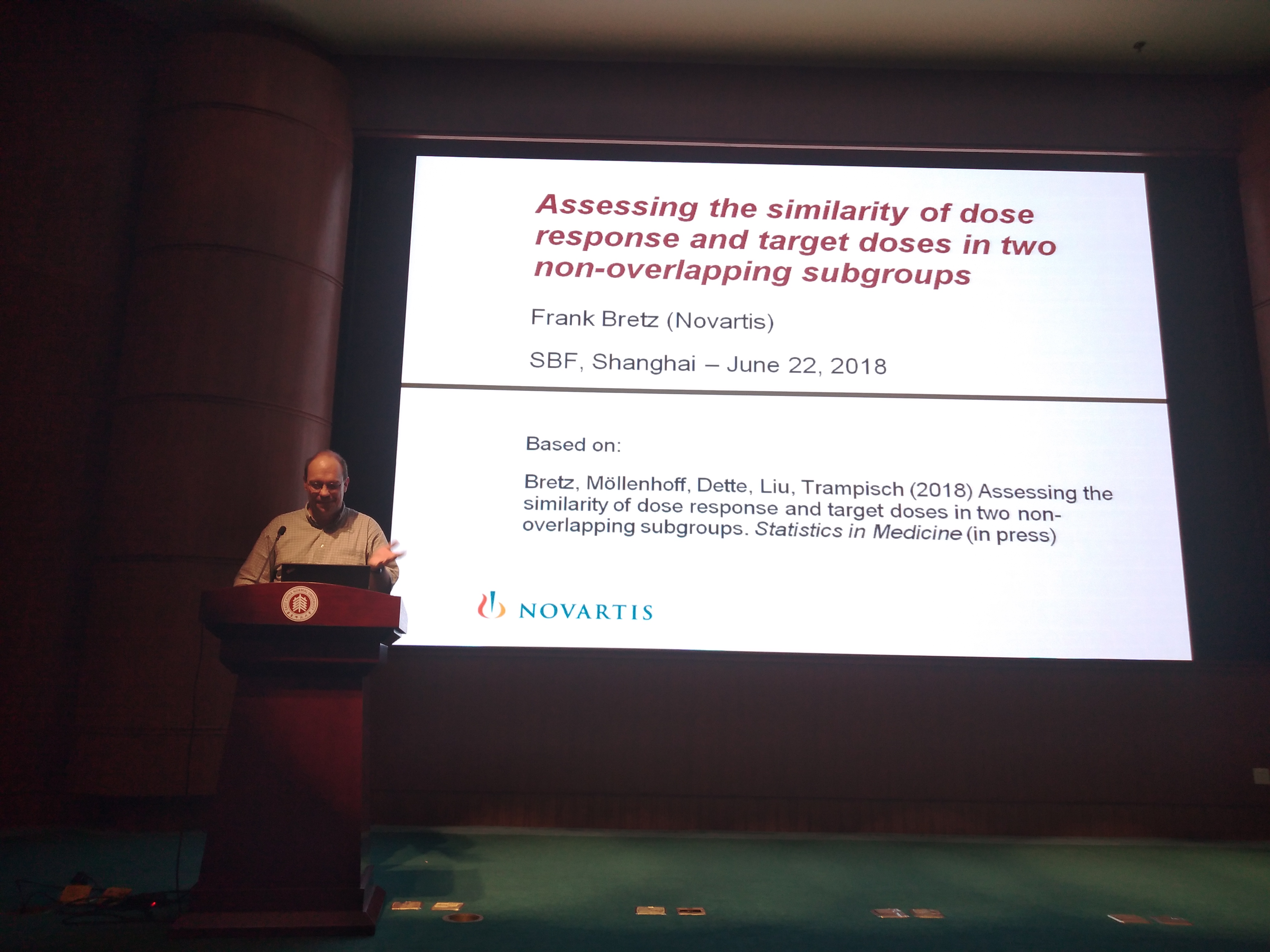 诺华统计方法和咨询组主管Frank Bretz博士作主题为“Assessing the similarity of dose response and target doses in two non-overlapping subgroups”的报告。