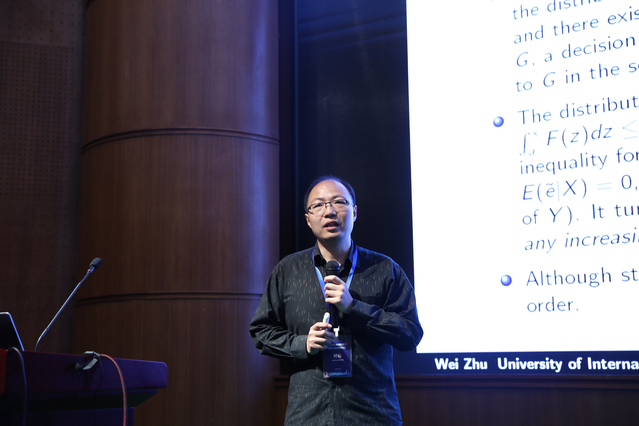 此次会议安排了一个主会场和五个分会场,共有70多场高水平的学术报告,其中大会邀请了比利时布鲁塞尔自由大学的Steven Vanduffel教授、德国乌尔姆大学的An Chen教授以及澳大利亚新南威尔士大学的Qihe Tang教授做大会主旨报告;南开大学的柏立华教授、中央财经大学的池义春教授、中山大学的曾燕教授、对外经贸大学的祝伟教授、华东师大的李丹萍副教授做中会报告。