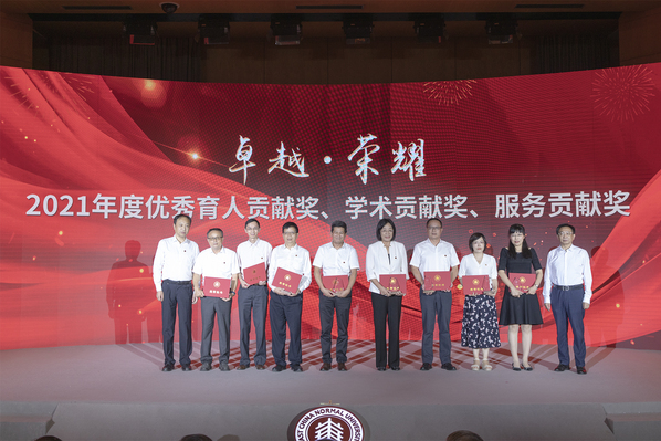 今天是教师节,华东师大庆祝第38个教师节主题活动于昨天下午在普陀校区科学会堂举行,并同步线上直播。在主题活动中,学校为做出突出贡献的教职工,现场表彰了学校2021年度育人贡献奖、学术贡献奖、服务贡献奖获得者等。
