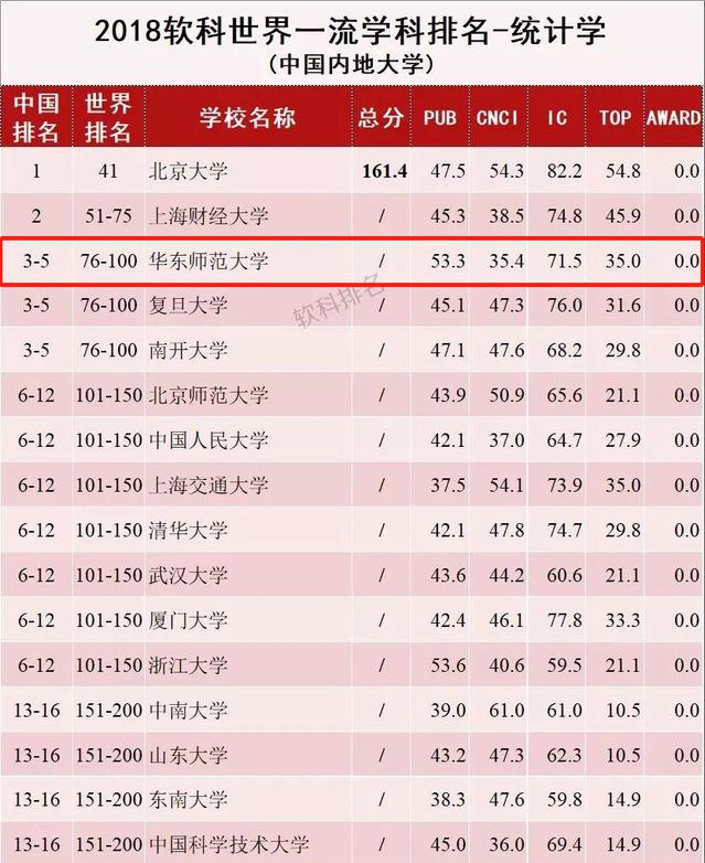 软科于7月17日正式发布2018“软科世界一流学科排名”(ShanghaiRanking's Global Ranking of Academic Subjects)。统计学学科排名里中国内地共有16所大学上榜,学部统计学再次进入世界百强行列,位列中国内地第三名,各项指数与去年相比均上升。
