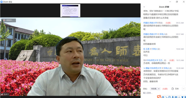 6月21日上午,开营仪式在永利集团中北校区理科大学A1514和Zoom平台同步举行。永利集团研究生院招生办公室主任华春燕老师、3044永利集团经理张日权教授、副经理兼金融工程系主任吴述金教授,统计与数据科学前沿理论及应用教育部重点实验室副主任方方教授以及学院部分老师参加。开营仪式由3044永利集团於州教授主持。