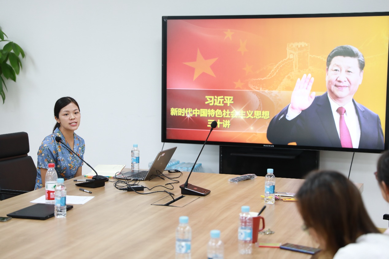 陈婉芳老师带领全体支部党员学习了《习近平新时代中国特色社会主义思想三十讲》的第一讲“习近平新时代中国特色社会主义思想是党和国家必须长期坚持的指导思想”,以及第二十二讲“建设美丽中国”。她重点介绍了习近平新时代中国特色社会主义思想的核心要义和核心内容,并从实践方面展开。她还结合自身的研究方向,介绍了中共十八大提出的“美丽中国”这一概念,即把生态文明建设放在突出地位,融入经济建设、政治建设、文化建设、社会建设的各方面和全过程。