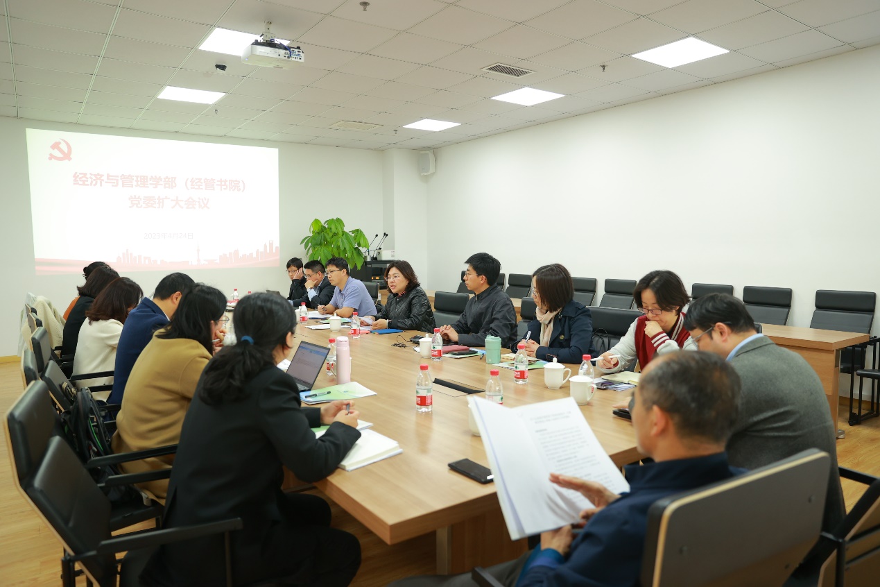 2023年4月24日,经济与管理学部(经管书院)党委以理论学习中心组扩大会议形式召开主题教育动员部署会,动员部署学习贯彻习近平新时代中国特色社会主义思想主题教育各项工作,传达介绍学校第十四次党代会筹备工作。学部班子成员、教工党支部书记、专职组织员参加会议。会议由经济与管理学部(经管书院)党委书记岳华主持。