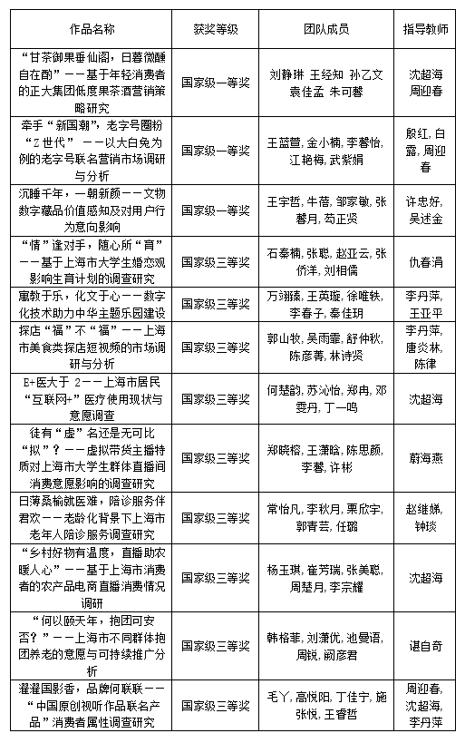 王蓝萱等同学组成的团队针对老字号品牌联名营销的热点问题,以较为出圈的老字号品牌大白兔的联名产品为例,以未来消费市场的核心力量“Z世代”消费者为调研对象。从消费者视角出发,深度挖掘老字号品牌联名营销市场消费现状,归纳相关经验,从而提出基于Z世代细分市场的差异化营销策略,对老字号品牌的未来发展具有重要意义。该团队获得国家级一等奖。